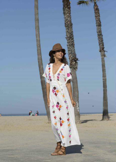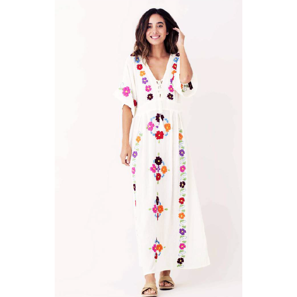 Blue Boheme Julia Long Embroidered Dress Cotton - Small